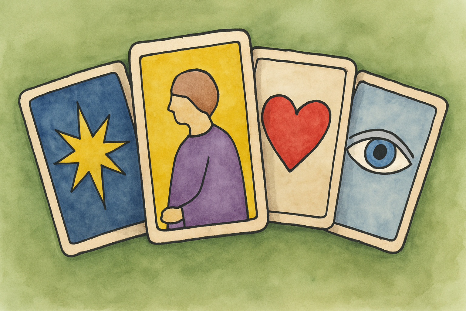 We explore the cards together. Instead of assigning meaning, I ask reflective questions like: